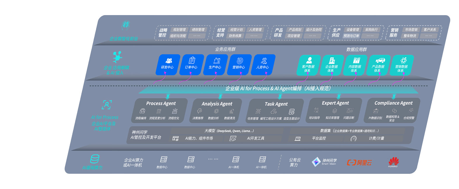 NG导航问学智车解决方案是一套基于AI技术的汽车行业智能化系统,,,,覆盖从底层算力到顶层AI应用的全栈方案。。方案由算力层、、、、模型层和应用层组成:算力层,,,方案支持多种一体机配置,,,,具备云端灵活部署、、多云适配以及动态优化计算资源的能力;模型层,,,NG导航问学平台版提供了企业级AI应用一站式构建与管理平台,,,,支持基于后训练强化技术的汽车企业专属模型的训练、、、、评测和运营;应用层,,NG导航问学DeepSeek版提供包括超级员工、、、、智能招采、、、、智能营销、、、智能客服、、AI for BI等一系列解决方案,,,可助力汽车行业实现数字化转型,,让管理更智能、、响应更敏捷。。