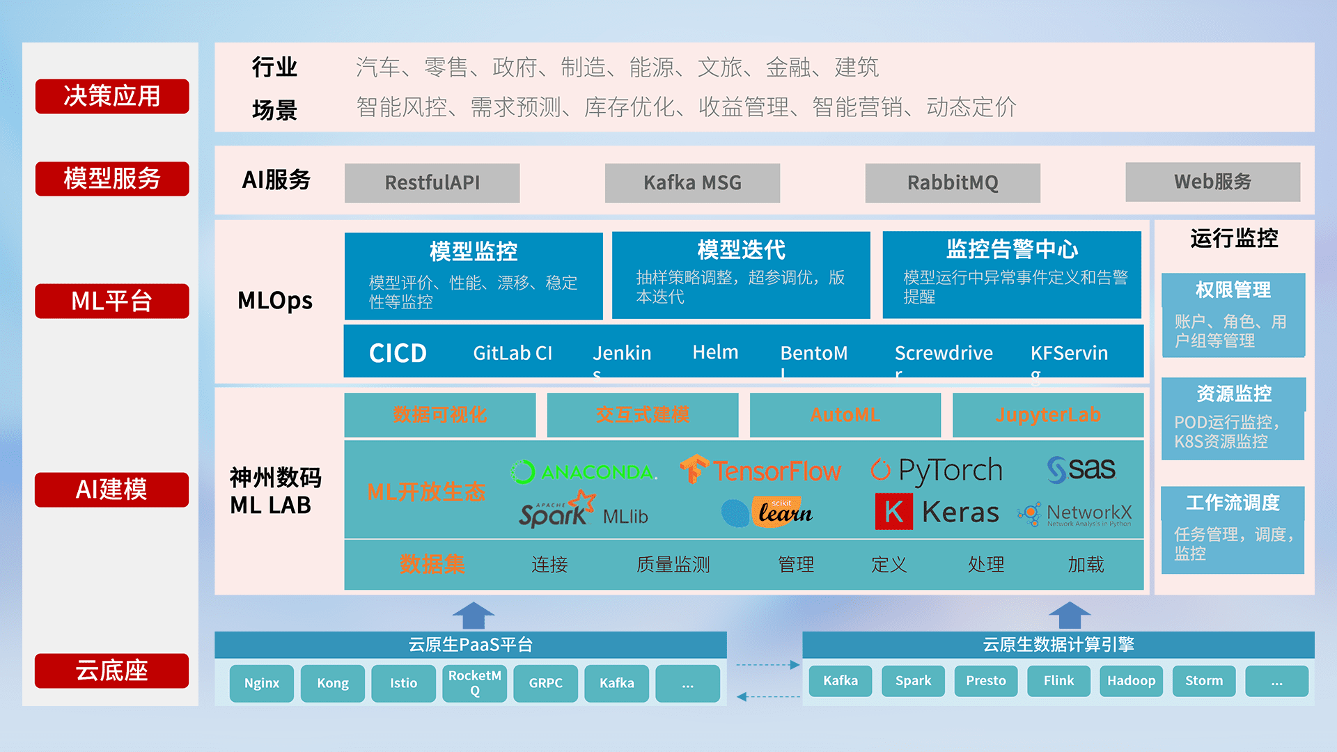 数据+模型双引擎驱动,,面向智能服务场景,,,快速灵活利用AI技术,,,,支持业务决策,,,,助力企业智能化转型破局。。。